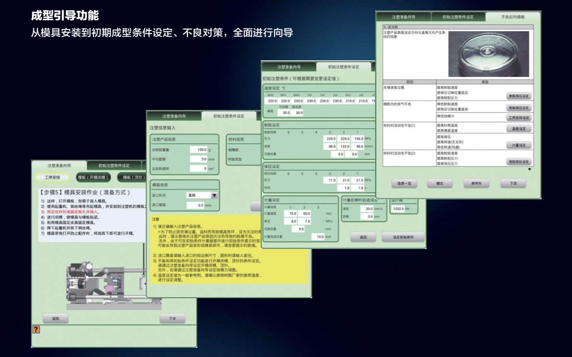 可与成型条件一起保存成型时的注意事项,配套装置的设定,成型品的照片等